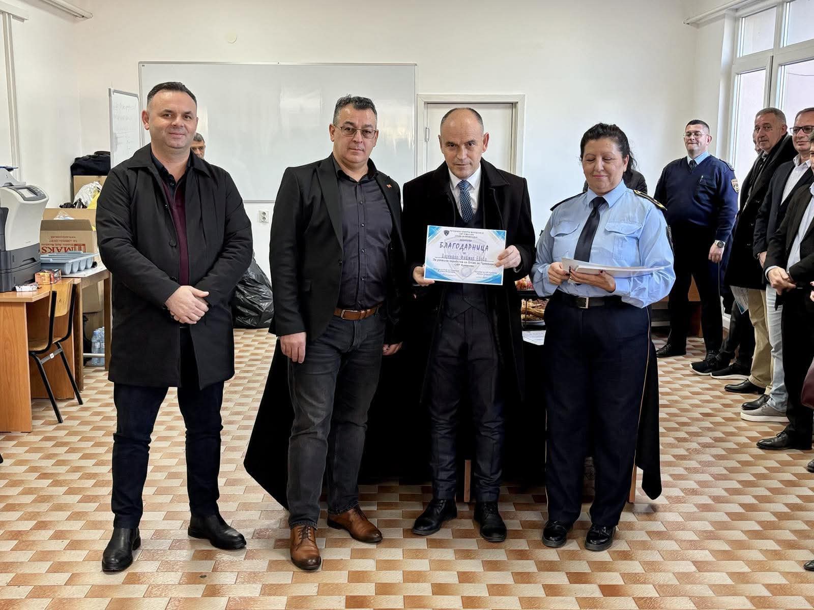 Drejtori i shkollës fillore Komunale, Bajram Shabani, Fatmir Ebibi, pranoi mirënjohjen për bashkëpunim me Sektorin për Punë të Brendshme në Kumanovë.